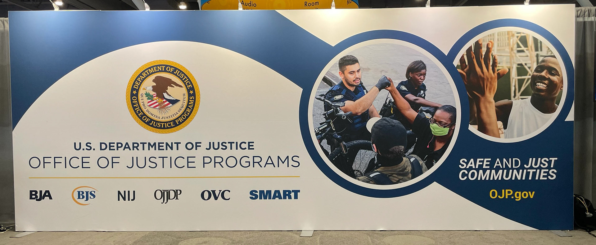 Final 10 x 20' OJP Exhibit banner displayed at IACP Conference in Boston, MA, 2024