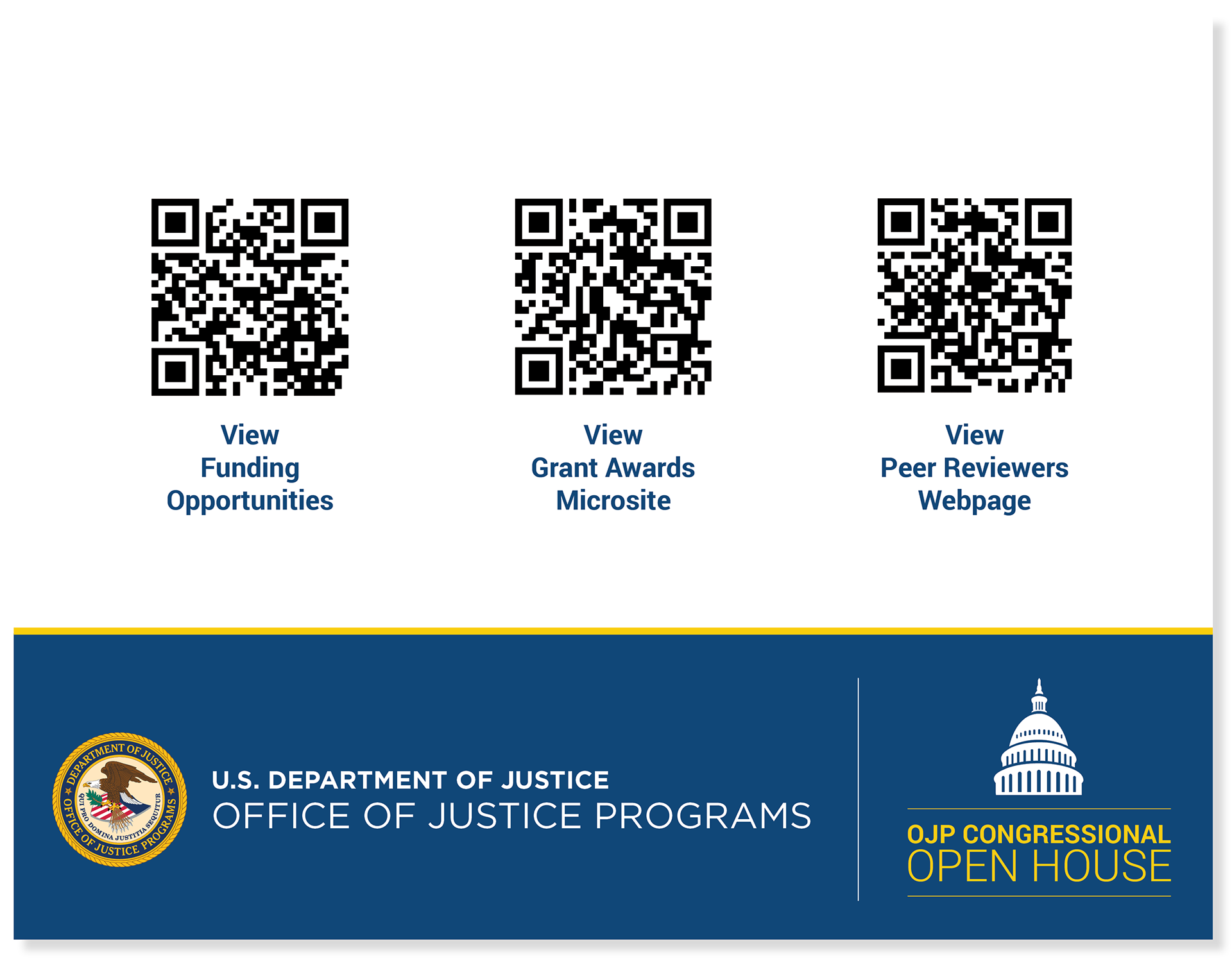 tabletop poster design with QR codes for OJP Congressional Open House event