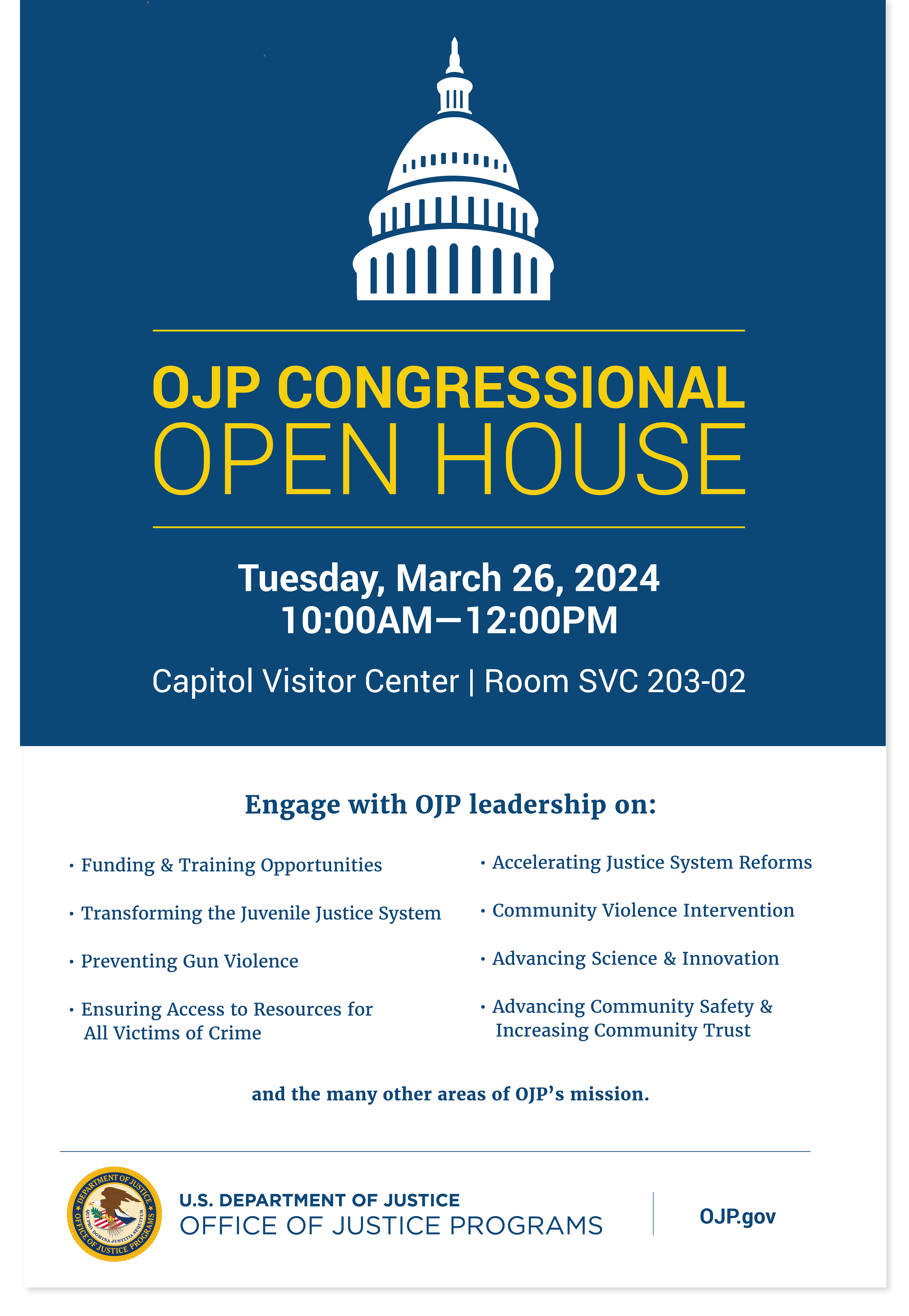 24x36" poster design for OJP Congressional Open House event
