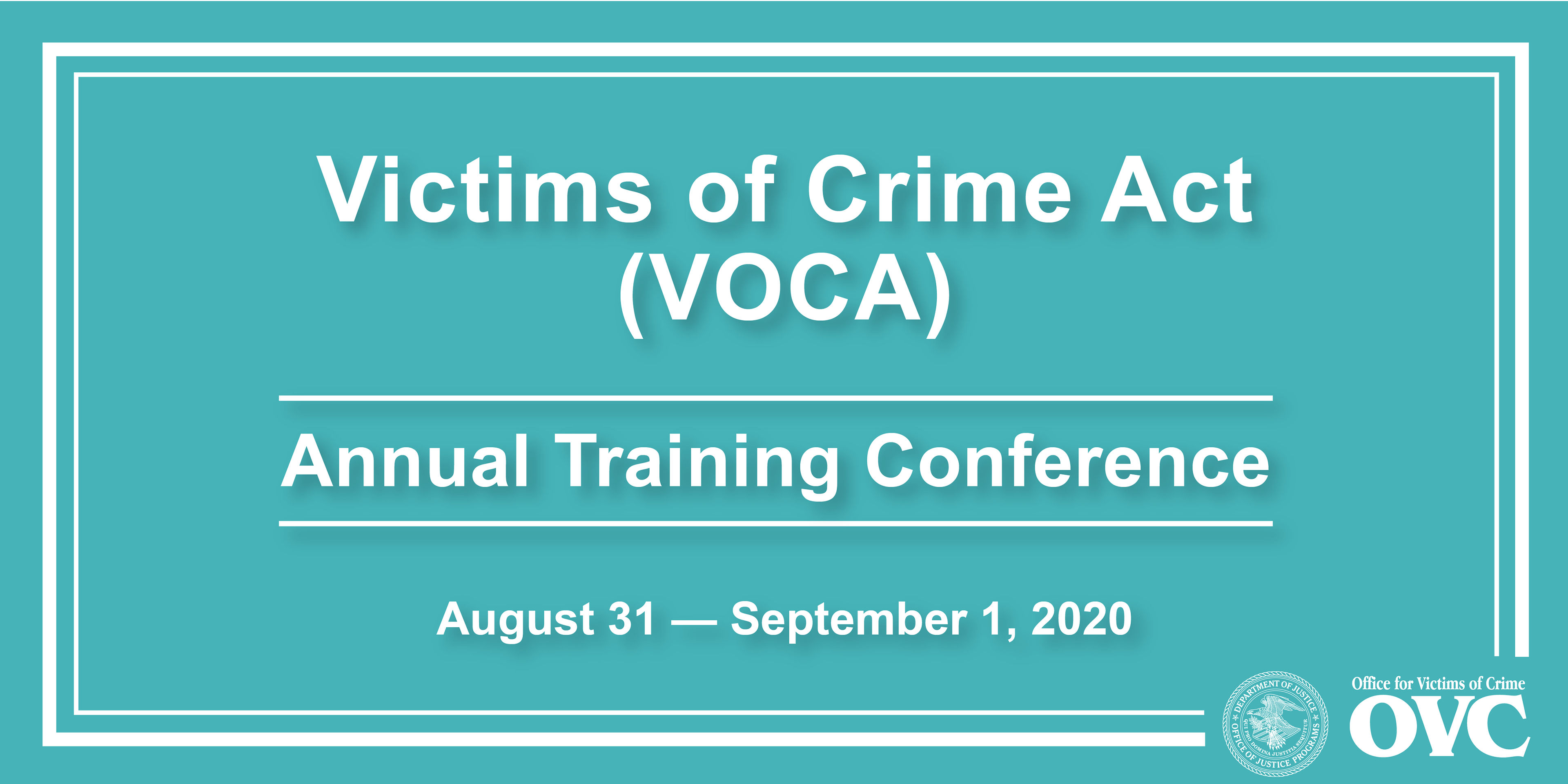 social media card graphic promoting OVC's Annual Training Conference for the Victims of Crime Act