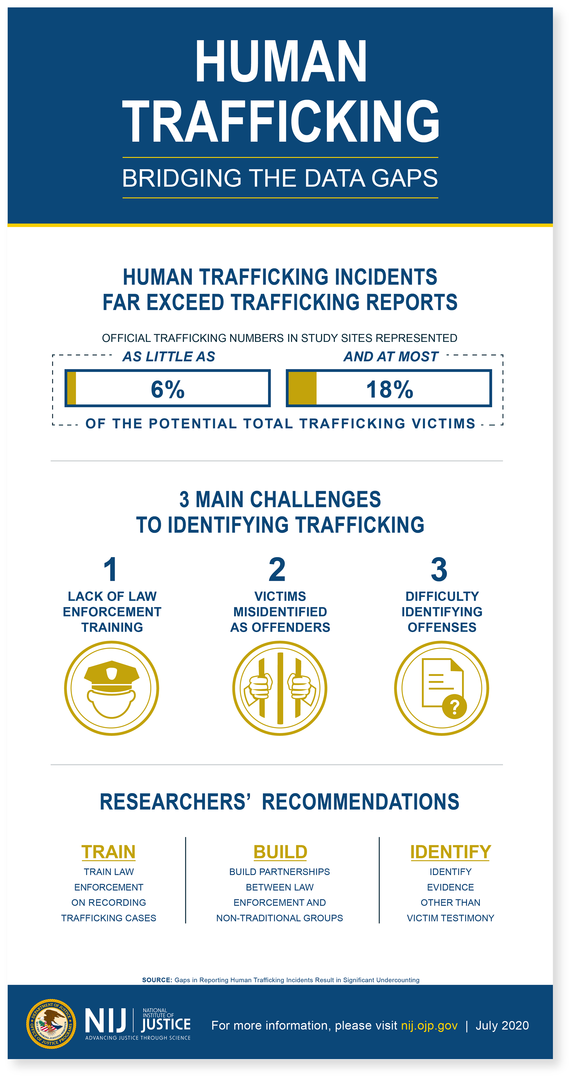 infographic summarizing NIJ article on facts about human trafficking