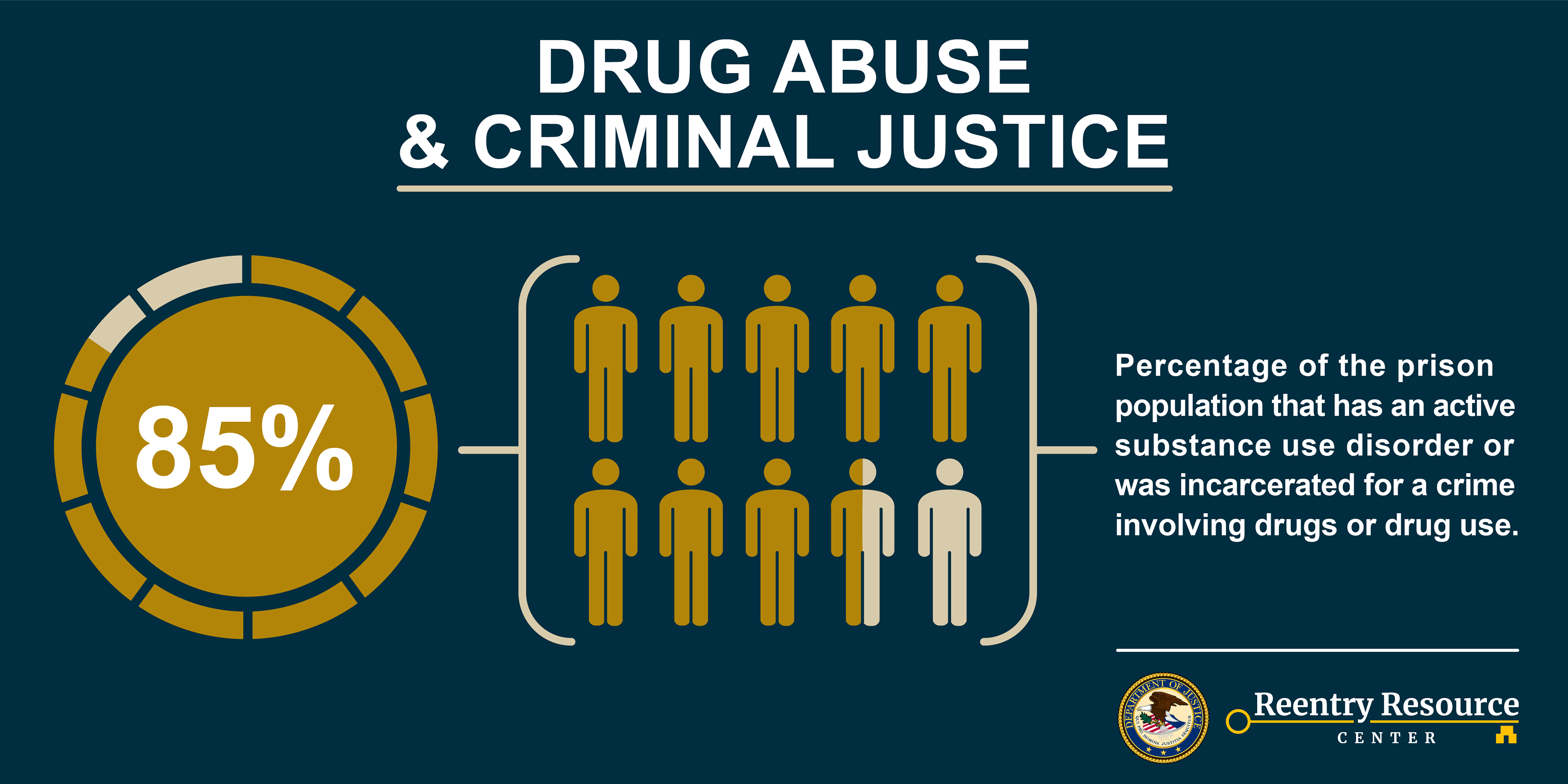 social media infographic promoting the Reentry Resource Center and facts on drug abuse and the criminal justice system