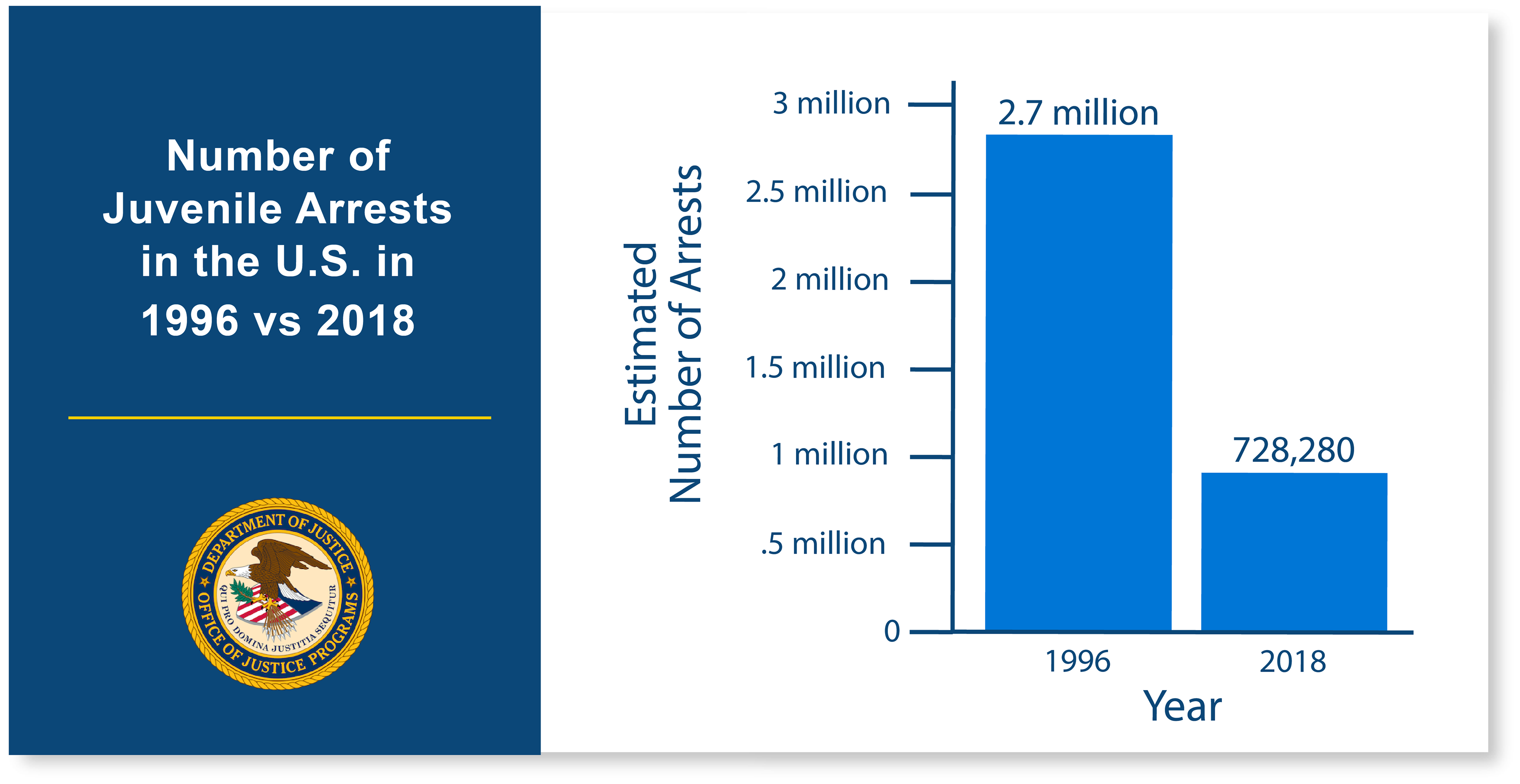 social media infographic about juvenile arrests in the U.S. in 1996 vs 2018